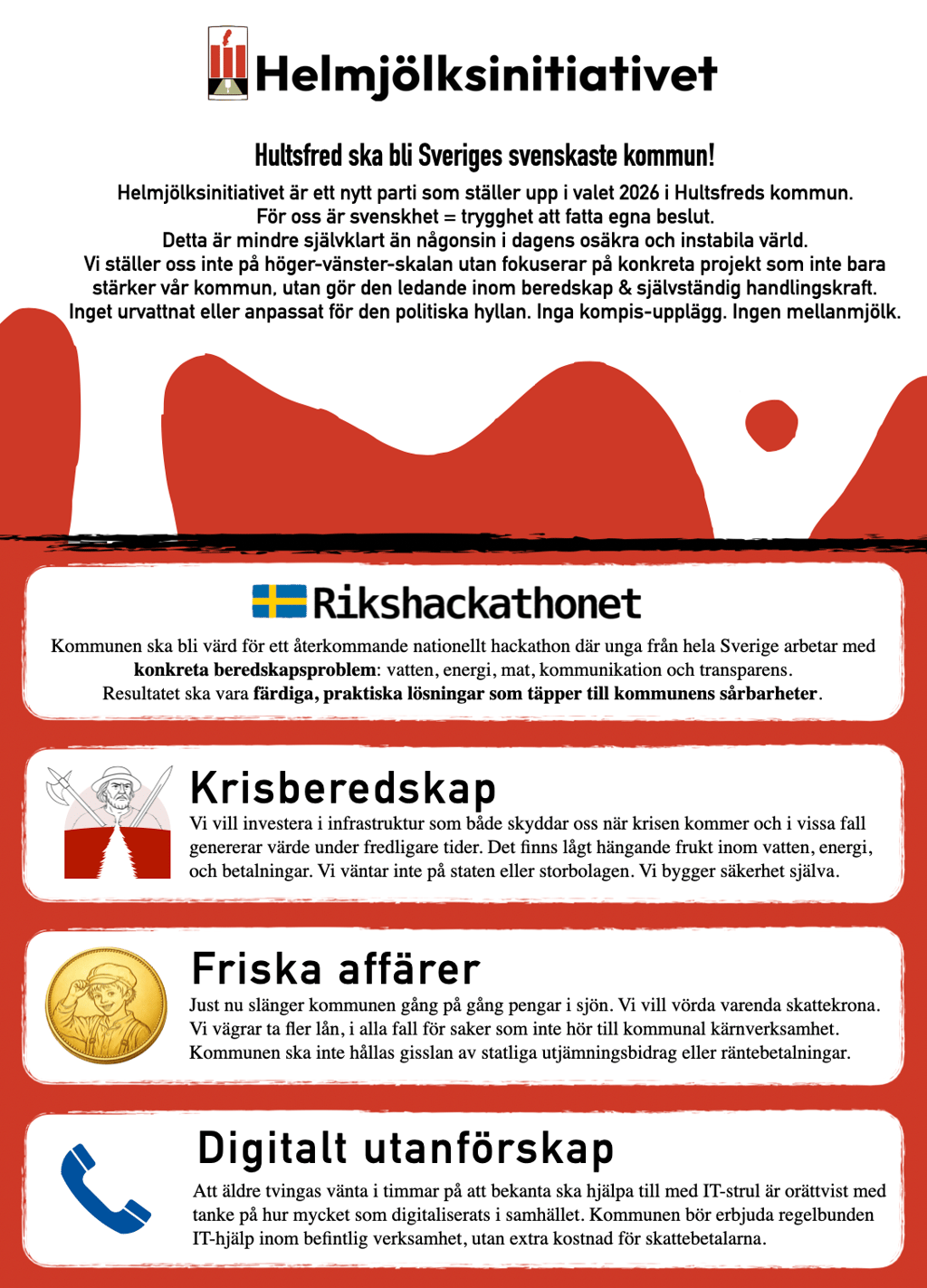 Helmjölksinitiativet vill vara ett komplement – inte en fiende. Vi vill ställa frågor andra inte vågar ställa, och lyfta idéer andra partier missar. Någon måste börja. Vi är beredda att ta det ansvaret.