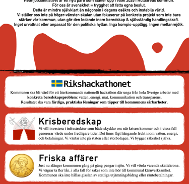 Ett nytt parti som står för ökad kommunal suveränitet: ett stolt lokalsamhälle som väntar mindre på direktiv uppifrån och bara använder sina resurser på det som faktiskt passar just här, i en allt mer instabil värld. Ingen mellanmjölk!